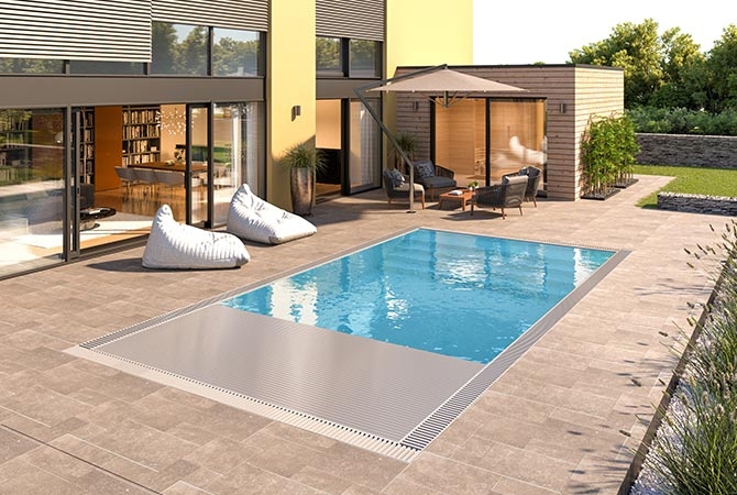 Underwater roller blinds are not only a simple way to protect the water from pollution or temperature loss, but also an intuitive solution for pool users, their kids and their four-footed friends.
